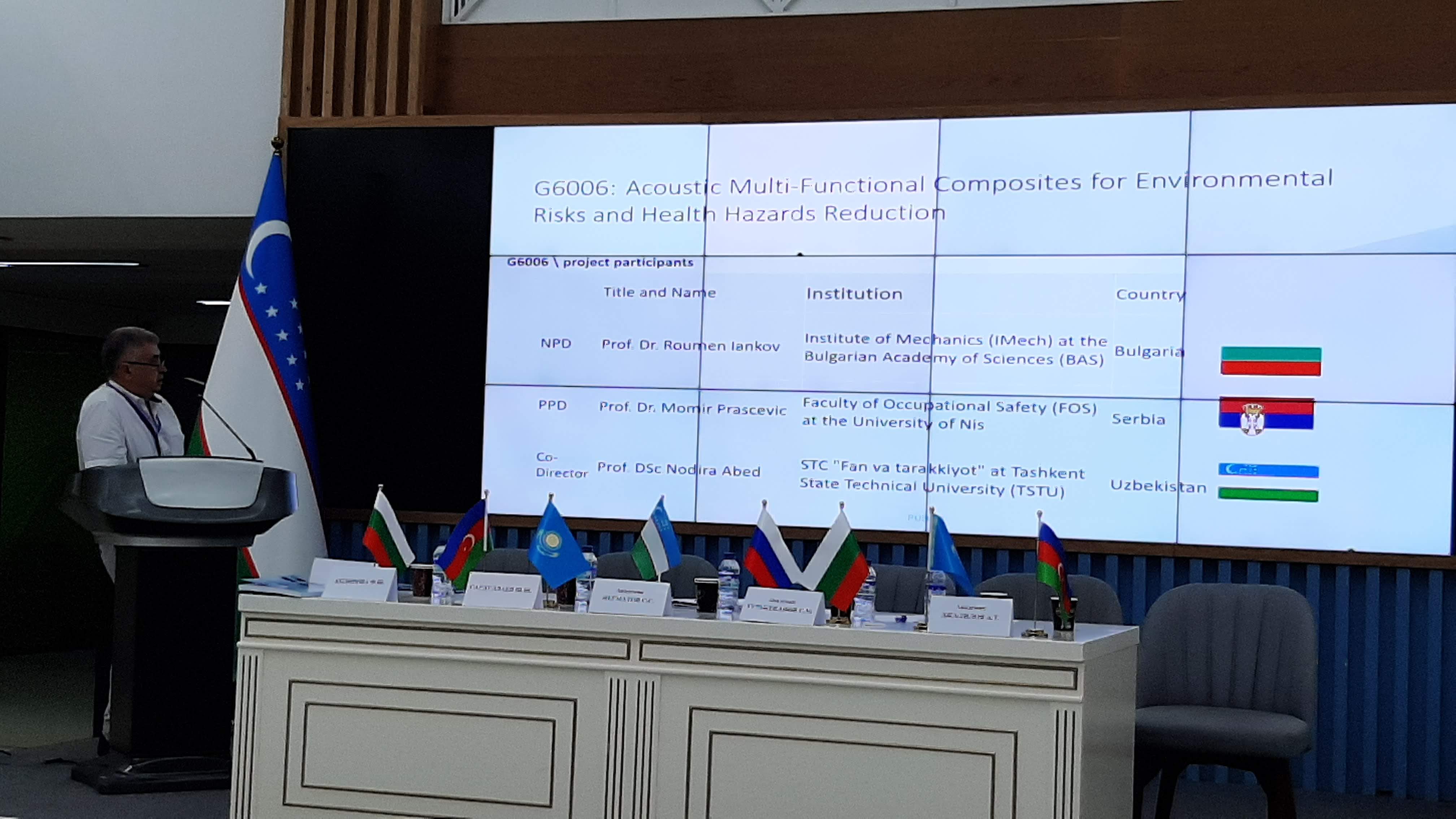 Наши наставници на Националном техничком Универзитету Ислам Каримов у Ташкенту, Република Узбекистан Реализација пројекта „Acoustic Multi-Functional Composites for Environmental Risks and Health Hazards Reduction“, број: SPS.MYP.G6006. у оквиру програма “The NATO Science for Peace and Security Programme”, настављена је гостовањем пројектног тима Факултета заштите на раду у Нишу на Националном Техничком Универзитету Ислам Каримов у Републици Узбекистан. На позив Националног техничког Универзитета Ислам Каримов, партнера на пројекту, чланови пројектног тима Факултета: проф. др Момир Прашчевић, др Миомир Раос, др Дарко Михајлов и асистент Петар Јовановић учествовали су у раду међународног научног скупа под називом „Нови композитни и нанокомпозитни материјали, структура, особине и примена“. Скуп је одржан 17. и 18. септембра 2025. године, у главном граду Републике Узбекистан Ташкенту, уз учешће бројних истраживача и гостију из земље и иностранства. На конференцији су презентовани резултати експерименталних истраживања акустичких карактеристика материјала спроведених на нашем Факултету, а који су произведени у лабораторијама партнера домаћина. Истраживања су обављена у складу са дефинисаном динамиком реализације задатака заједничког међународног научног пројекта под окриљем “NATO Emerging Security Challenges Division” (НАТО Одељења за нове безбедносне изазове). На маргинама конференције обављени су радни састанци учесника пројекта и обављени разговори о правцима даље сарадње у области истраживања и припрема за учешћа на новим међународним пројектима. Посебно интересовање домаћина односило се на могућности размене наставног особља и аплицирања на нове позиве у оквиру билатералних и мултилатералних програма сарадње. У оквиру посете, чланови пројектног тима Факултета посетили су град Самарканд и обавили радни састанак са проректором Националног медицинског Универзитета као и директором Научног центра за имунологију, алергологију и људске геноме. На састанку је истакнута жеља за успостављањем научне сарадње која темељи на вези између области којима се баве колеге са Медицинског Универзитета у Самарканду са областима које се изучавају на Факултету с обзиром на то да је у основи рада једних и других унапређење и очување здравља људи као и хуманизација услова живота и рада људи.