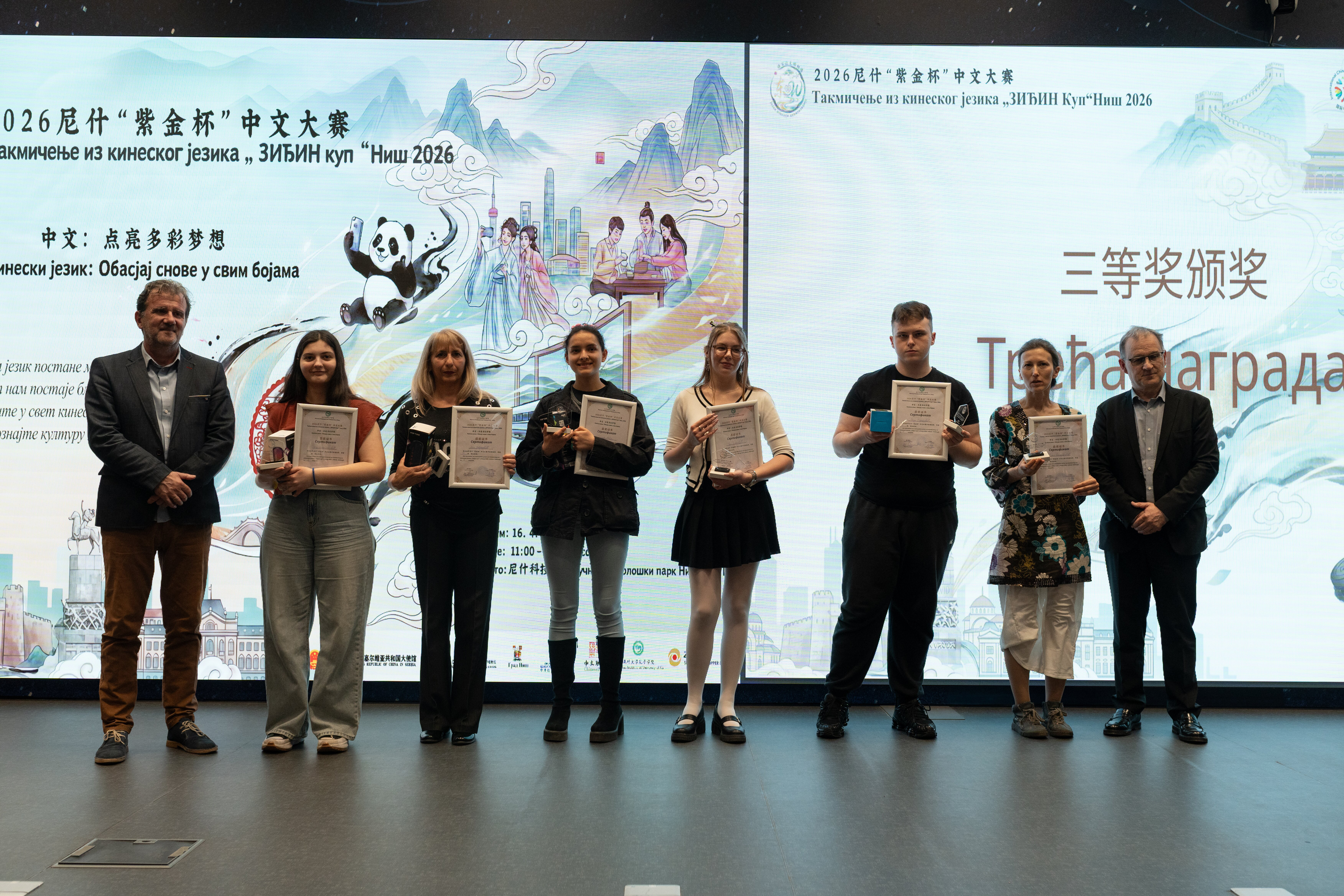 На позив Института Конфуције Филозофског факултета у Нишу, представници Факултета, декан, проф. др Срђан Глишовић, продеканица за материјално пословање и развој, проф. др Евица Јовановић и Александра Петковић, самостална стручнотехничка сарадница за научноистраживачки рад и међународну сарадњу, присуствовали су, у четвртак 16.04.2026 године у Научно-технолошком парку Ниш, Међународном дану кинеског језика. Ова манифестација, која је обухватила и такмичење у познавању кинеског језика, окупила је представнике амбасаде Народне републике Кине, Универзитета у Нишу, града Ниша и локалних институција, као и представнике кинеских привредних субјеката са подручја града, са циљем продубљивања раније успостављених научних и привредних веза.