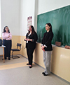 Уводни део радионице наставиле су наше бивше студенткиње, данас запослене у EHS систему компаније „Aptiv“, Александра Савић и Душанка Ранђеловић, експерти за безбедност и здравље на раду, противпожарну заштиту и заштиту животне средине. Оне су студенткињама представиле реалне примере из праксе, систем управљања ризицима и улогу EHS стручњака у међународном производном окружењу.