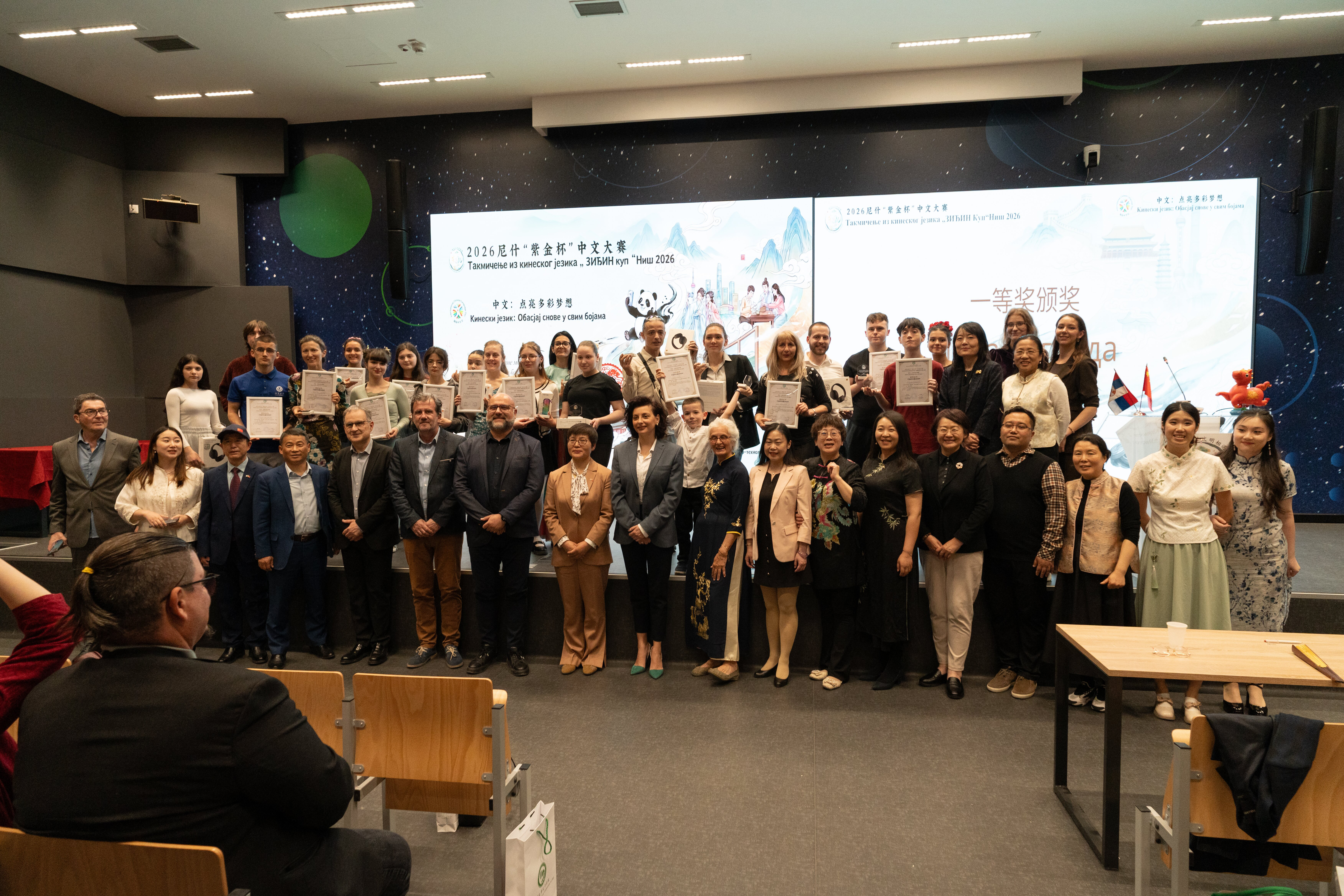 На позив Института Конфуције Филозофског факултета у Нишу, представници Факултета, декан, проф. др Срђан Глишовић, продеканица за материјално пословање и развој, проф. др Евица Јовановић и Александра Петковић, самостална стручнотехничка сарадница за научноистраживачки рад и међународну сарадњу, присуствовали су, у четвртак 16.04.2026 године у Научно-технолошком парку Ниш, Међународном дану кинеског језика. Ова манифестација, која је обухватила и такмичење у познавању кинеског језика, окупила је представнике амбасаде Народне републике Кине, Универзитета у Нишу, града Ниша и локалних институција, као и представнике кинеских привредних субјеката са подручја града, са циљем продубљивања раније успостављених научних и привредних веза.