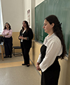 Уводни део радионице наставиле су наше бивше студенткиње, данас запослене у EHS систему компаније „Aptiv“, Александра Савић и Душанка Ранђеловић, експерти за безбедност и здравље на раду, противпожарну заштиту и заштиту животне средине. Оне су студенткињама представиле реалне примере из праксе, систем управљања ризицима и улогу EHS стручњака у међународном производном окружењу.